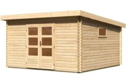 KARIBU Gartenhaus Askola 3,5, Terragrau, Fichtenholz 19mm, 491 X 246 X 211 Cm, Flachdach, Anbau 2,4m