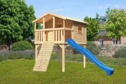 KARIBU Anna Turm, Naturbelassen, Nordische Fichte, 347x264x270cm, Mit Rutsche Rot Und Doppelschaukel