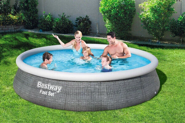 BESTWAY Fast Set Pool, Grau (Rattanoptik), TriTech, Ø 396 X 84 Cm, Mit Filterpumpe, Selbstaufbauend