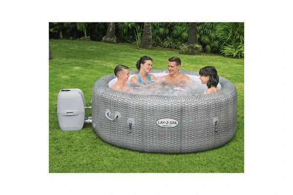 Gerade wenn nach der Sommersaison die Temperaturen fallen, gibt es nichts Angenehmeres! Schalten Sie ab – mit einer bis zu 40°C warmen Sprudelmassage. Der Lay-Z-Spa Honolulu AirJet von Bestway ist Ihre Oase der Entspannung. Als aufblasbarer Whirlpool ist er leicht zu transportieren und einfach zu verstauen. Die 120 AirJet-Düsen bieten eine Sprudelmassage mit extra Luxus-Feeling! Das robuste TriTech-Material hält jeder herkömmlichen Belastung stand und ist in grauer Rattanoptik gehalten.