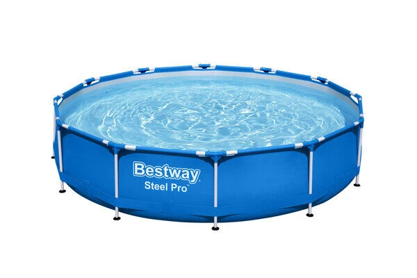 BESTWAY Steel Pro Pool Mit Gestell, Blau, TriTech/Stahl, Ø366x76cm, Mit Filterpumpe