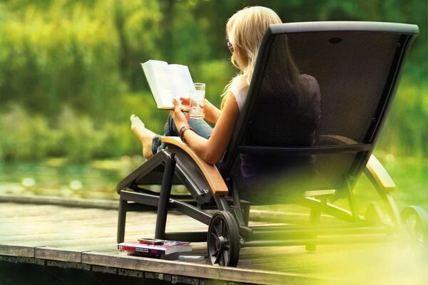 HARTMAN Da Vinci Gartenliege, Xerix/anthrazit, Alu/Textilene, 170 X 82 X 30 Cm, Mit FSC-Teak-Armlehnen