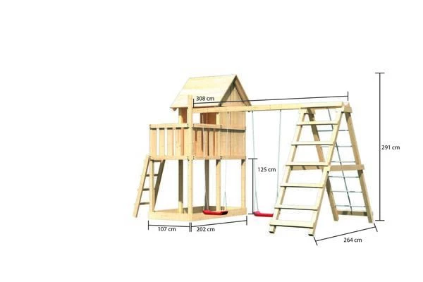 KARIBU Frieda Stelzenhaus, nordische Fichte, wahlweise mit Schaukel und Gerüst