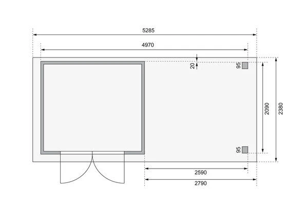 - Artikelbezeichnung: Askola 3 im Set mit Anbaudach 2,80 m Breite und 19 mm Rückwand