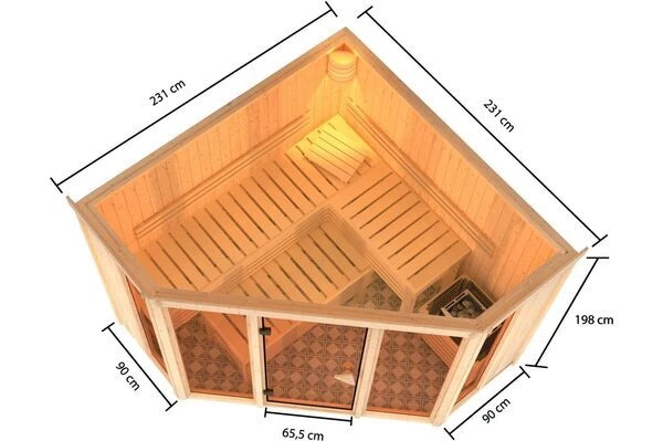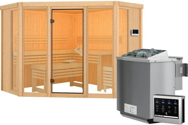 Sauna Ainur von KARIBU mit diversen Kranz-, Ofen- und Steuerungsoptionen