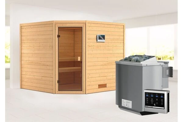 Sauna Leona von KARIBU mit div. Tür-, Kranz-, Ofen- und Steuerungsoptionen