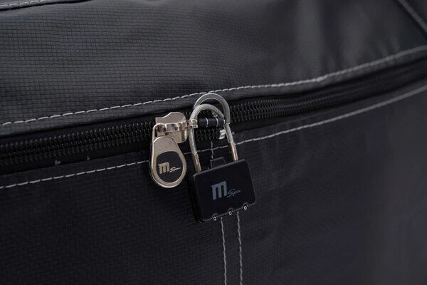 Das Hauptmaterial des Whirlpools besteht aus schwarzem, robustem PVC-Lederimitat. Als farblicher Akzent befindet sich unten ein silberner Streifen, der ebenfalls aus dem robusten PVC besteht. Die Abdeckfolie die mit dem Schnallsystem zugemacht wird besteht ebenfalls aus PVC-Kunstleder mit Innenfolie.