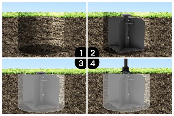 OUTFLEXX Bodenanker XXL Für Ampelschirme, Anthrazit, Pulverbesch. Stahl, 50x50x63 Cm, Zum Einbetonieren