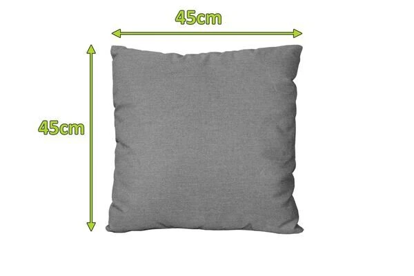 Es kann mit seinen Maßen von ca. 45 x 45 cm entweder nur zu Dekozwecken genutzt werden oder aber um den Sitzkomfort Ihrer Sunbrella Möbel noch mehr zu steigern. Das Obermaterial des Kissens besteht aus hochwertigem Sunbrella Textilen (260g/m²) in der Sunbrellafarbe flanelle. Das Basismaterial von Sunbrella ist spinndüsengefärbtes Acryl, bei dem bereits bei der Herstellung Farbpigmente in die Faser eingebettet werden. Dadurch ist das Gewebe UV-beständig und trotzt Wind- und Wettereinflüssen. Durch ihre absolute Wetterfestigkeit können Sie die Loungemöbel ganzjährig ohne Schutz auf Ihrer Terrasse stehen lassen – und auch verschüttete Getränke oder dreckige Schuhe machen dem Stoff nichts aus. Auch in puncto Farbechtheit unterscheidet sich Sunbrella vom klassischen Textilgewebe, die Farbe sieht auch nach Jahren in Gebrauch noch aus wie neu. Außerdem weist der Stoff atmungsaktive, schmutzabweisende und schimmelbeständige Eigenschaften auf, weshalb er sich hervorragend für den Innen- und Außenbereich eignet. Das Innere der Kissen besteht aus 100 % Polyester und hat ebenfalls schnelltrocknende Eigenschaften. Das Kissen besitzt einen Reißverschluss, so kann der Bezug ganz leicht abgenommen werden. Je nach Beanspruchung und Umwelteinflüssen empfehlen wir, Sunbrella Möbel einmal im Monat mit einem Wasserschlauch oder einer sanften Bürste von oberflächlichen Verschmutzungen zu befreien. Pflege- und Reinigungsmittel finden Sie im Zubehör.
