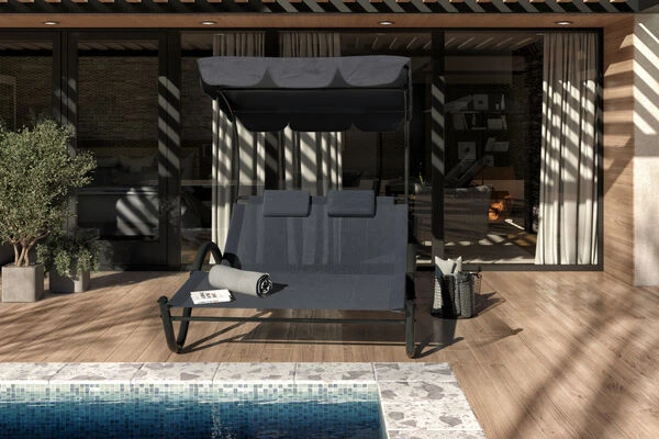 OUTFLEXX Doppelliege, Anthrazit, Polyester/Stahl Pulverbeschichtet, 205x138x34cm, Inkl. Nackenkissen, Rollbar