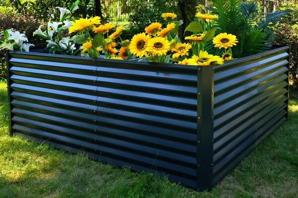 Eck-Hochbeet von OUTFLEXX® in anthrazit, ca. 210 x 210 x 90 x 84 cm
