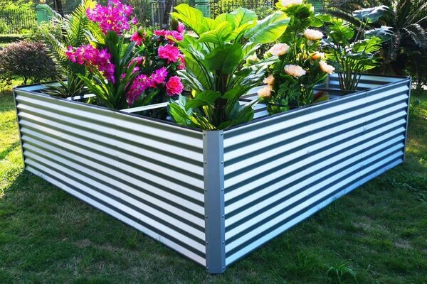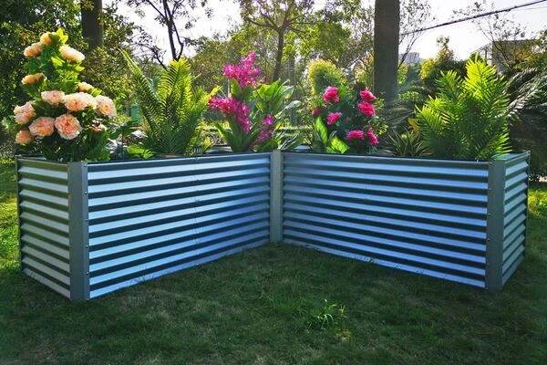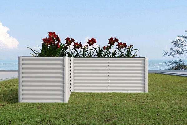 Eck-Hochbeet von OUTFLEXX® in silber, ca. 270 x 270 x 90 x 84 cm
