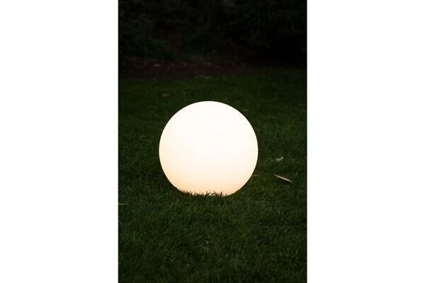 Gefertigt aus robustem Polyethylen ist diese Dekolampe sowohl für den Indoor-, als auch für den Außeneinsatz geeignet. Sie ist UV-beständig, wetterfest und pflegeleicht. Eine optimale Haltbarkeit erzielen Sie, indem Sie die Lampe regelmäßig im ausgeschalteten Zustand mit einem feuchten Tuch abwischen. So verhindern Sie, dass sich Schmutz absetzt. Die Lampe hat die Maße von ca. 40 x 38,5 cm, ein Gewicht von ca. 1,2 kg. Die Kabellänge beträgt ca. 235 cm, was sie bei Ihrer Standortwahl sehr flexibel macht. Diese Leuchte besitzt eine E27 Fassung mit vorinstalliertem warmweißem LED-Leuchtmittel und bietet somit die größtmögliche Flexibilität bei der Wahl der Lichtquelle. Sie können warmweiße, kaltweiße oder farbige Leuchtmittel verwenden, smarte LED-Lampen mit Farbwähler, Energiesparlampen uvm. Die im Lieferumfang enthaltene Fernbedienung bietet noch größeren Gestaltungsspielraum bei der Farbauswahl und Dekoration.