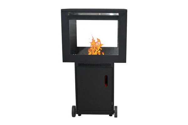 OUTFLEXX® Gas-Gartenkamin, schwarz, Stahl, 88 x 64 x 132 cm, auf Räder, inkl. Lavasteine