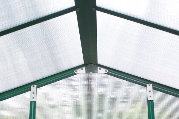 Maßgeblich gekennzeichnet durch ein natürlich grünes Aluminiumgestell und fast transparente Seiten- und Dachteile macht dieses Gewächshaus in jedem Garten eine gute Figur und bietet Ihren Pflanzen dabei ein geschütztes Leben weitab von lästigen Schädlingen, Regen und Wind. Die spezielle Dachform dieses Gewächshauses ermöglicht eine optimale Raumnutzung, sodass Sie auch unter den Dachschrägen rückenschonend Gärtnern können.