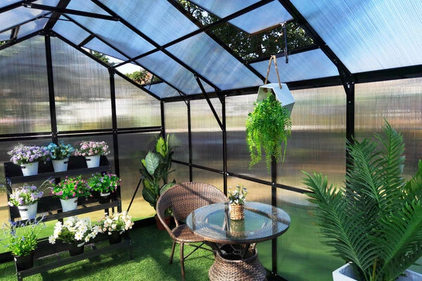 - Material Dach und Wände: Polycarbonat (6 mm)