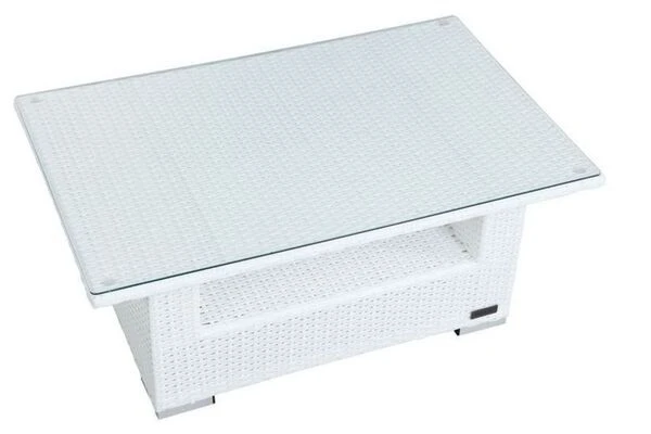 OUTFLEXX® ModulelementeLine: Poly Rattan Tisch in Weiß mit Glasplatte