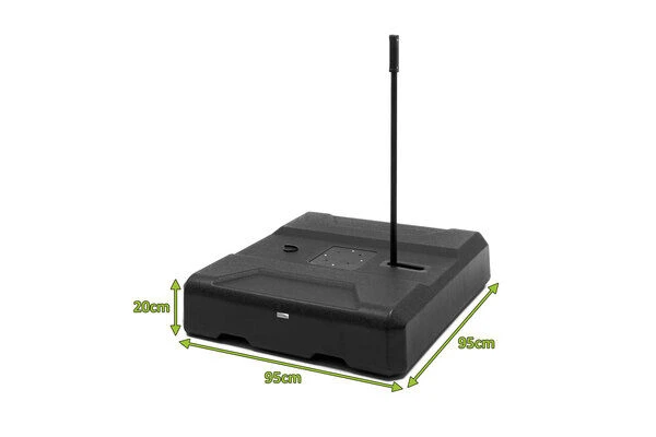Der schicke Schirmständer aus hochwertigem HDPE-Kunststoff in Anthrazit hat eine stattliche Größe von ca. 95 x 95 x 20 cm, die für Stabilität sorgt. Sein Leergewicht liegt bei ca. 27 kg, er lässt sich jedoch leicht auf ein Mindestgewicht von ca. 100 kg befüllen. Welches Schirmständer-Gewicht Ihr Schirm im Speziellen benötigt, entnehmen Sie bitte der Artikelbeschreibung.