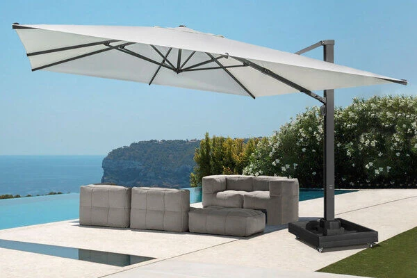Der Ultimate XL Ampelschirm bietet Ihnen einige Vorteile und praktische Funktionen. Zum einen besitzt der Schirm keinen Mittelmast und bietet daher eine praktische Lösung, um ohne Probleme eine komplette Sitzgruppe zu beschatten. Die großzügige Durchgangshöhe von ca. 255 cm schränkt die Nutzung Ihrer Terrasse in keinster Weise ein. Dazu spendet der Sonnenschutz mit einem hohen UV-Schutz von 80+ extra viel Schatten.