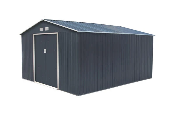 Der Türdurchgang des Gerätehauses hat eine Gesamtbreite von ca. 138 cm und eine Höhe von ca. 162 cm. Der Durchgang ist mit zwei Schiebetüren besetzt, was die Nutzung des Türdurchganges ermöglicht, ohne dass die Türen in den Transportweg hineinragen. Die Grundfläche des Gartenhauses beträgt ca. 26 m² und hat insgesamt 2 Lüftungsgitter, was die Luftzirkulation im Gerätehaus ermöglicht. Die Wände und das Dach des Hauses tragen die Farbe anthrazit. Durch die gedeckte Farbe fügt sich das Gerätehaus dezent in seine Umgebung ein.