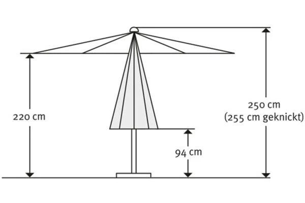 Für eine bestmögliche Planung des Aufstellortes Ihres neuen Schattenspenders haben wir Ihnen die wichtigsten Maße des Tunis Mittelstockschirms zusammengestellt: