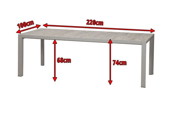 SIENA GARDEN Silva Diningtisch, Silber/washed Grey, Alu/Keramik, 220x100cm