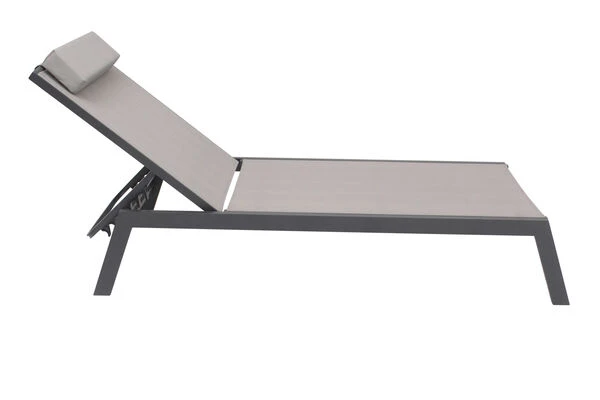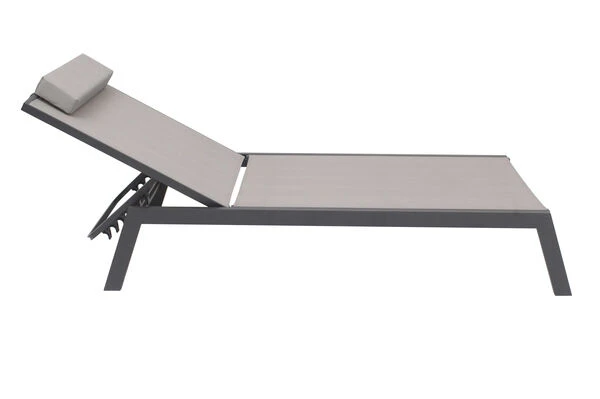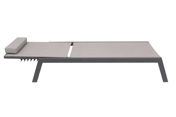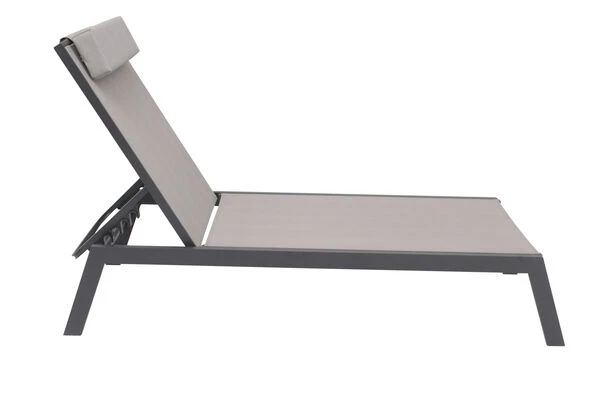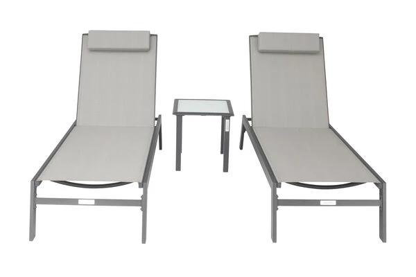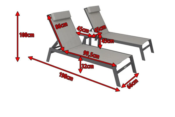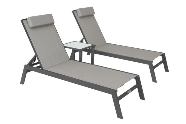 VILLANA 2er-Set Sonnenliegen, Anthrazit/grau, Alu/Textil, 198x66x32cm, Mit Beistelltisch 45x45cm